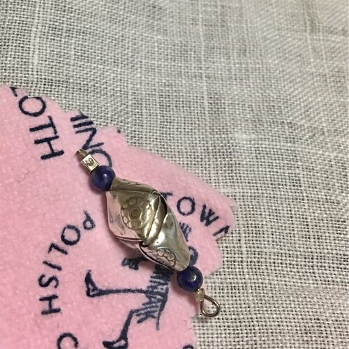 ご注文をいただいたら、 ・シルバー → 磨きます ・その他 → 軽く拭きます そして、ご希望の金具に付け替え。 特にご変更がなければ、新品に付け替えます。 今回は金具ご変更がなかったので、 新品のピアス金具に付け替え終了。 台紙ならぬ、リネンの台布に …