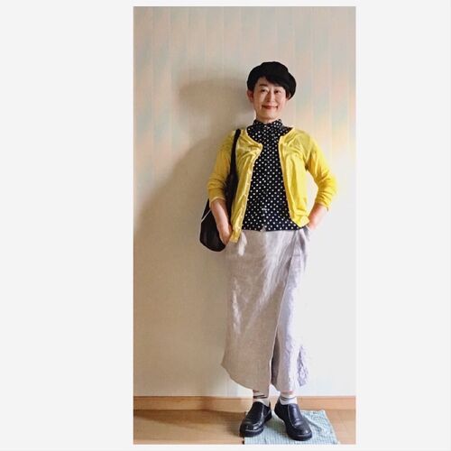 ベレー・不明 カーディガン・パラディ ブラウス・grin パンツ・ecoloco 靴下・無印 靴・フットアート バッグ・黒のキャンバス地のトートバッグ 『Don't worry,be happy』 | えふ※完売しました、ありがとうございました 物事にはいつも メリットとデメリット…
