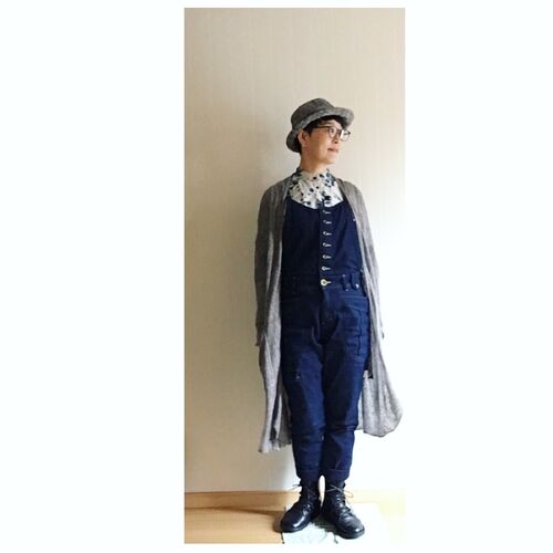 シャツ・フェリシモ サロペット・PATY カーディガン・エスオー 帽子・不明 靴・トリッペン 裾がゴムリブになっている サロペットです。 そのまま履いても、 合わせる服や靴とのバランスを見て リブ部分を折って履いてもイイ感じ。 (この画像では折っていま…