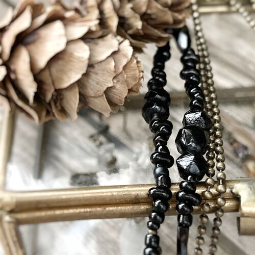 お待たせしました、 黒ビーズと金古美ポールチェーンの二重ネックレス『cassis(カシス)』 | えふ リリースしました。 少しずつ集めてきた、 黒色のフランスやチェコの、 ビンテージビーズや 現行のビーズで作った ネックレスです。 黒で統一はしましたが、…